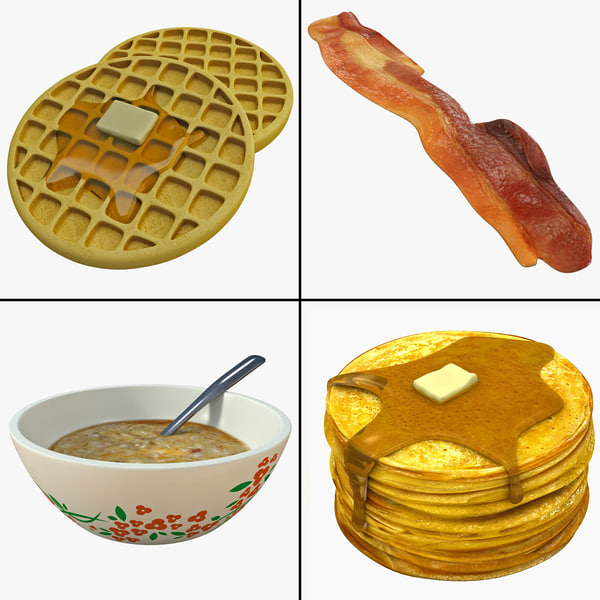 Home » Breakfast Food Collection pancakes bacon american waffles bowl of oatmeal cook hotcakes flapjacks vray syrup pork hot eat » Breakfast Food Collection
